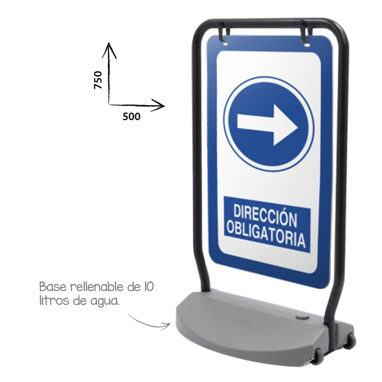Banner con estructura en aluminio y base rellenable de plástico. Doble cara
