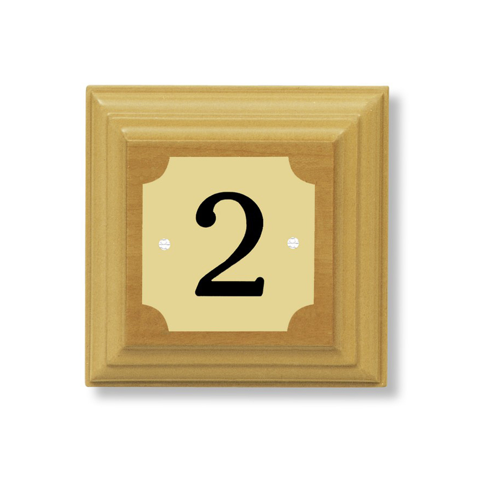 Nuestro letrero para piso con esquinas recortadas y base de madera de 16 mm de grosor en color roble AG-53 está fabricado en latón o en aluminio mate.