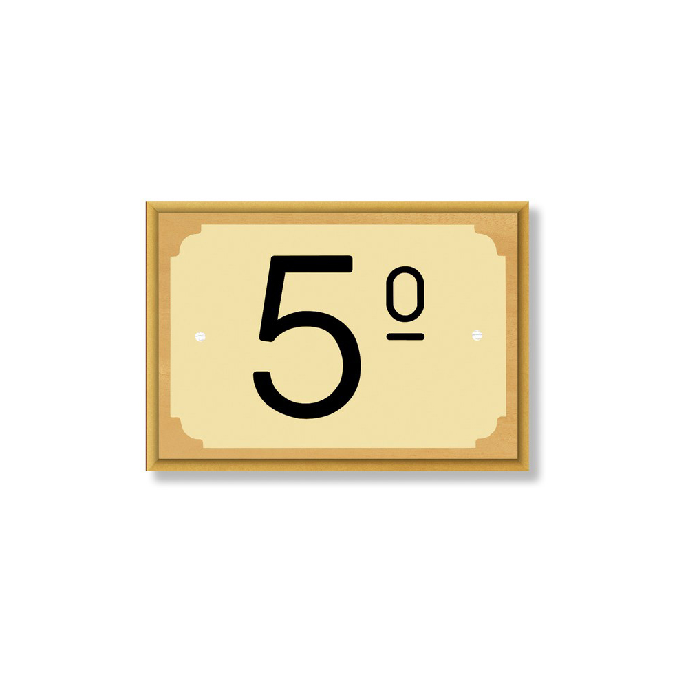 Nuestro letrero para piso con esquinas recortadas y base de madera de 11 mm de grosor en color roble AG-92 está fabricado en latón o en aluminio mate.