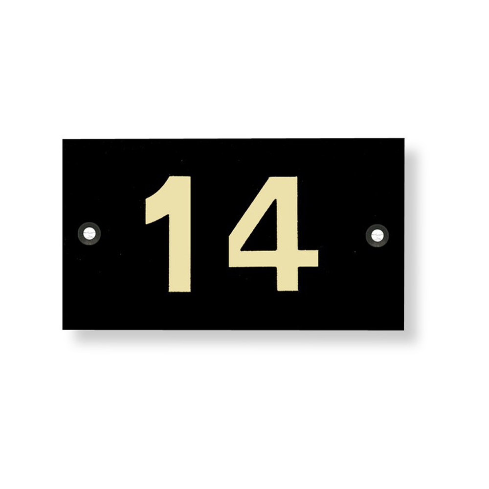 Nuestro letrero para piso AI-4 está fabricado en poliestireno negro con letras o números adhesivos de latón.