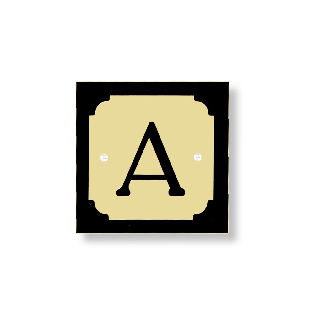 Nuestro letrero para piso con esquinas recortadas y base de poliestireno negro AF-23 está fabricado en latón o en aluminio mate.
