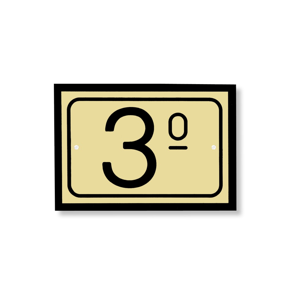 Nuestro letrero para piso con orla y base de poliestireno negro AF-12 está realizado en latón o en aluminio mate. Identifica cada planta o puerta de un edificio mediante la grabación correspondiente inscrita en él.