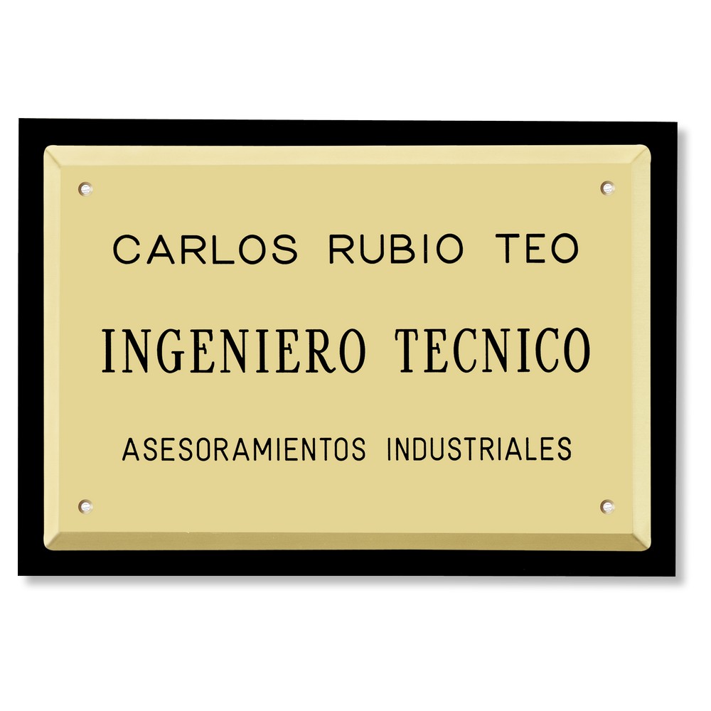 Nuestras placas para profesionales y negocios con base de poliestireno negro están fabricadas en latón. Tienen los bordes achaflanados mediante la técnica del embutido.