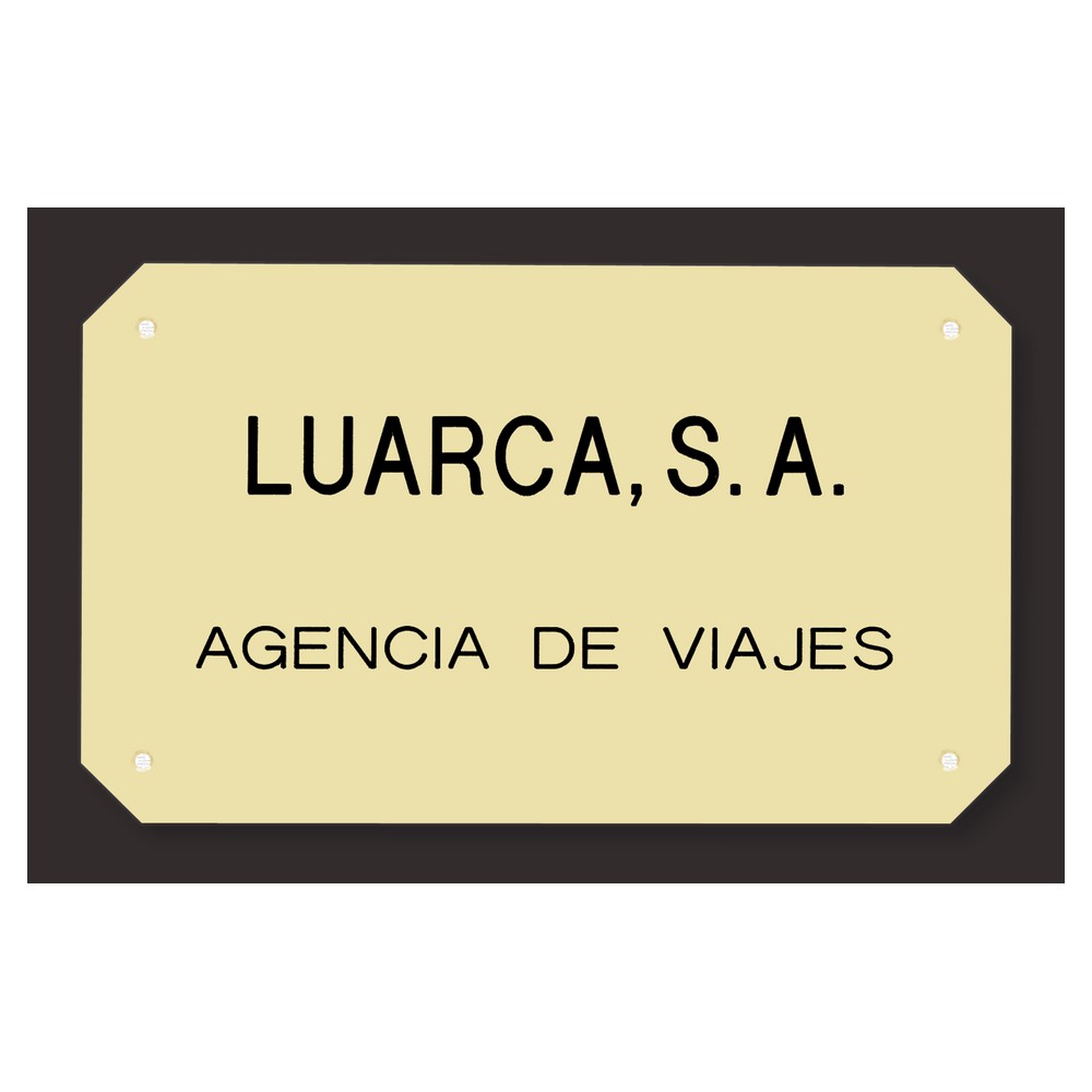 Puedes hacerte con tus placas personalizadas con esquinas recortadas. Situadas en el lugar correspondiente, como pueden ser fachadas o portales de edificios, y gracias a la grabación realizada en ellas, podemos identificar la ubicación de un negocio, una institución o los servicios de un profesional como por ejemplo abogados, notarios, servicios médicos, etc.