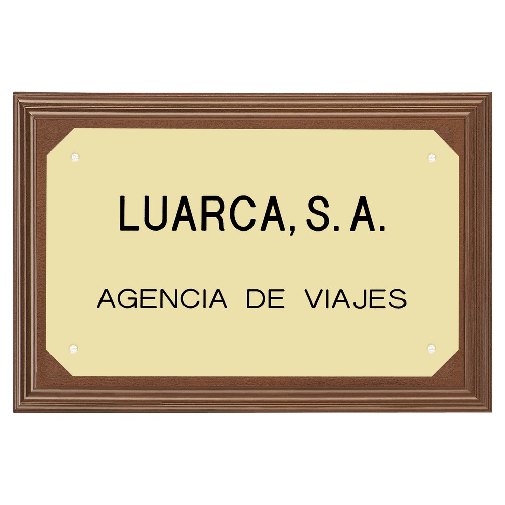 Puedes hacerte con tus placas personalizadas con esquinas recortadas y base de madera. Situadas en el lugar correspondiente como pueden ser fachadas o portales de edificios y gracias a la grabación realizada en ellas podemos identificar la ubicación de un negocio, una institución o los servicios de un profesional como por ejemplo abogados, notarios, servicios médicos, etc.