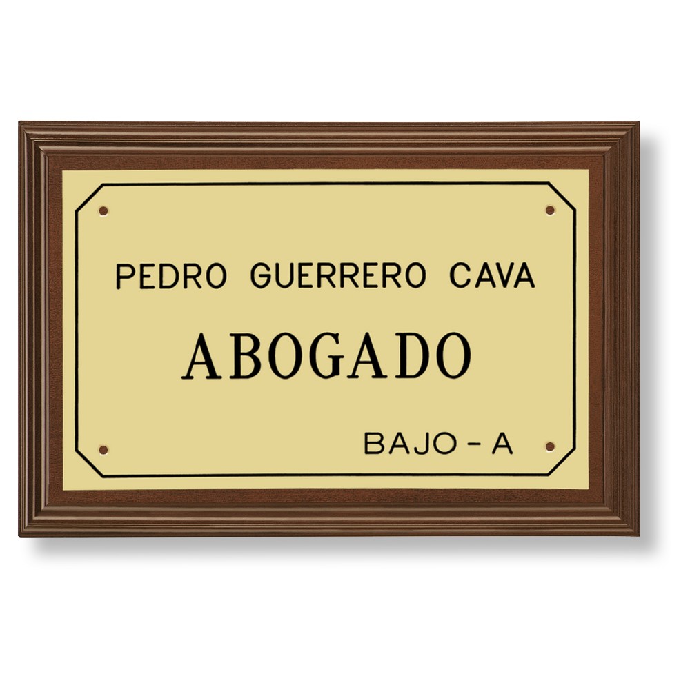 Puedes hacerte con tus placas personalizadas con orlas y base de madera. Situadas en el lugar correspondiente como pueden ser fachadas o portales de edificios y gracias a la grabación realizada en ellas podemos identificar la ubicación de un negocio, una institución o los servicios de un profesional como por ejemplo abogados, notarios, servicios médicos, etc.
