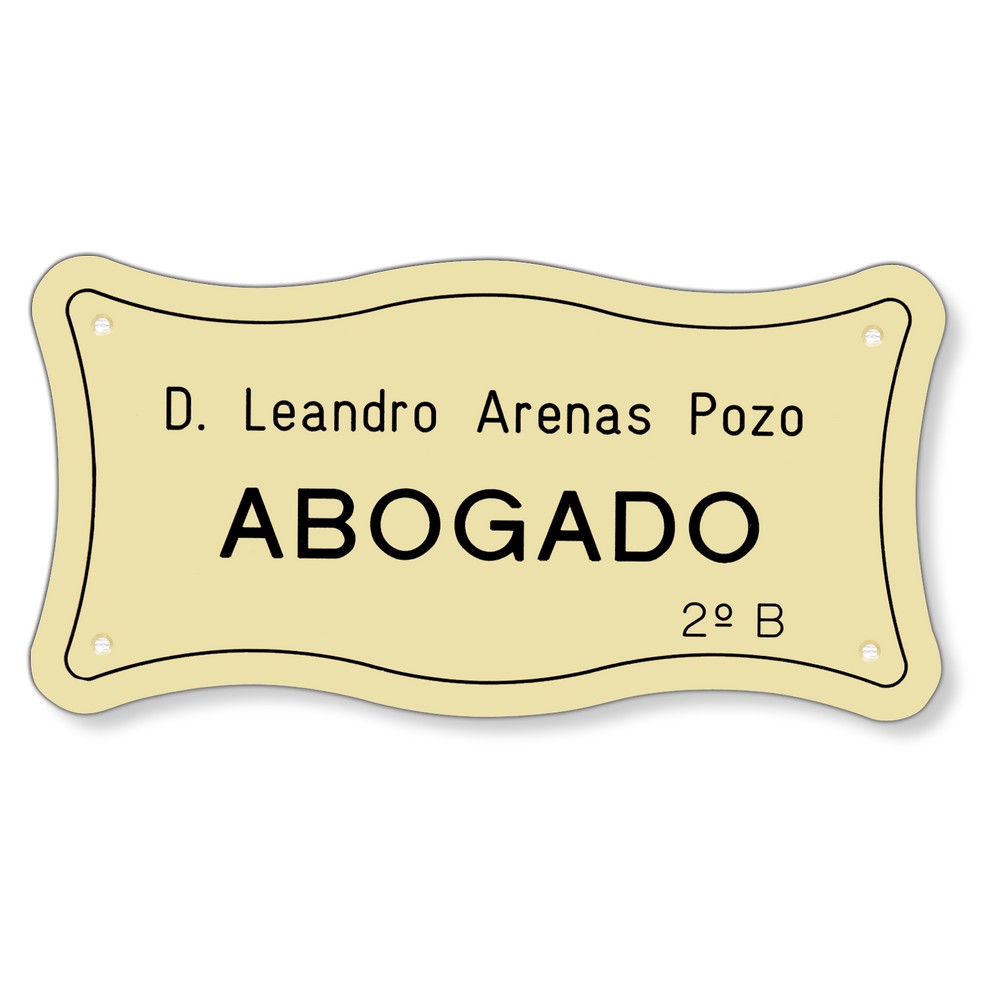 Puedes hacerte con tus placas de diseño personalizadas para profesionales y negocios. Gracias a la grabación realizada en nuestras placas y situadas en el lugar correspondiente, como pueden ser fachadas o portales de edificios, podemos identificar la ubicación de un negocio, una institución o los servicios de un profesional como por ejemplo abogados, notarios, servicios médicos, etc.