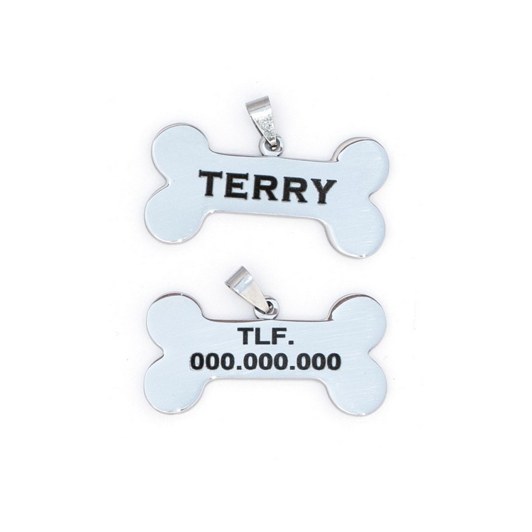 Puedes hacerte con tu placa de identificación para animales de compañía personalizada L-10. En el caso de que la mascota se extravíe la persona que la encuentre puede contactar con el dueño gracias a la inscripción grabada en ellas.