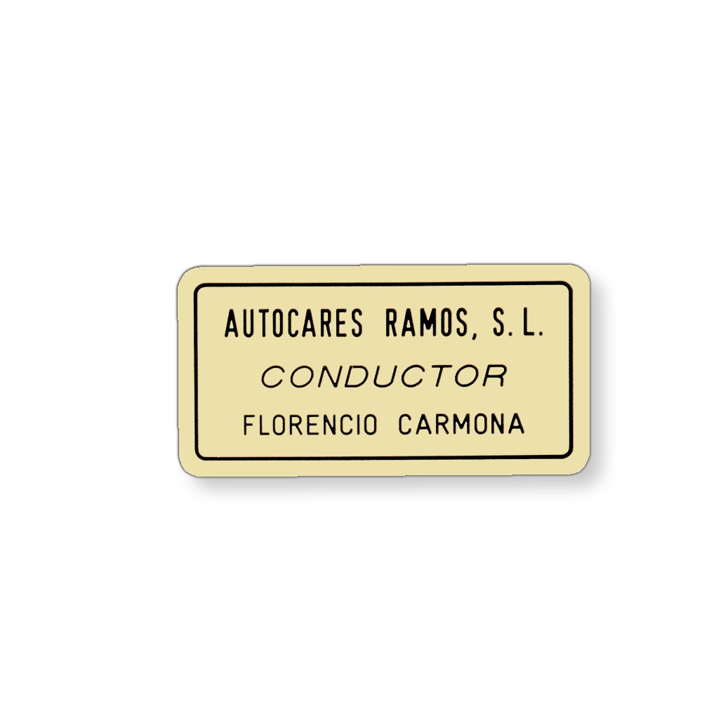 Esta placa incluye una fijación con imperdible, situada en su parte posterior, con la que puedes sujetarla a tu ropa. Permite identificar a la persona que la porta mediante la grabación de su nombre o cargo.