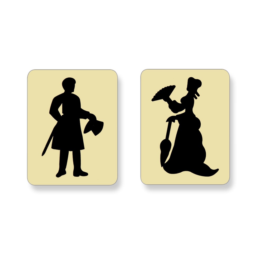 Puedes hacerte con tu pareja de placas de señalización para WC modelo AQ-7. Gracias a las siluetas serigrafiadas en ellas y colocadas en las puertas correspondientes indicarán que aseo debemos usar.