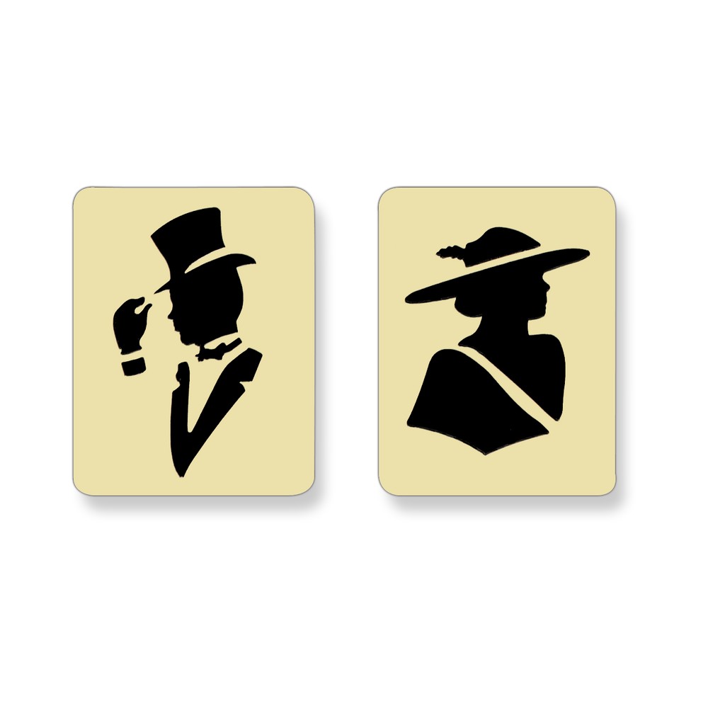 Nuestra pareja de placas adhesivas de señalización para WC modelo AQ-9 está fabricada en acero latonado.