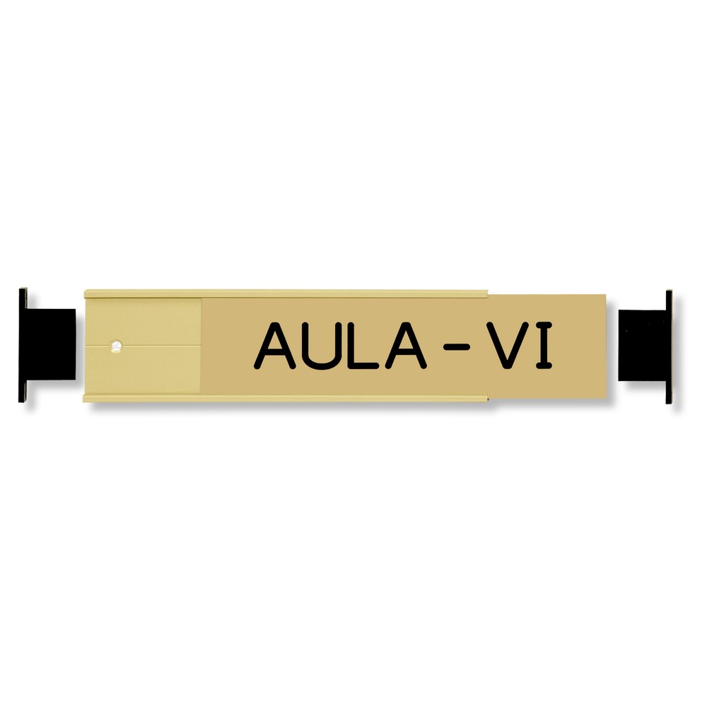 Nuestras regletas guías están fabricadas con perfil de aluminio extrusionado. Este perfil está anodizado en los colores oro o plata. Sobre las regletas guías se colocan las placas portaleyendas de plástico ABS.
